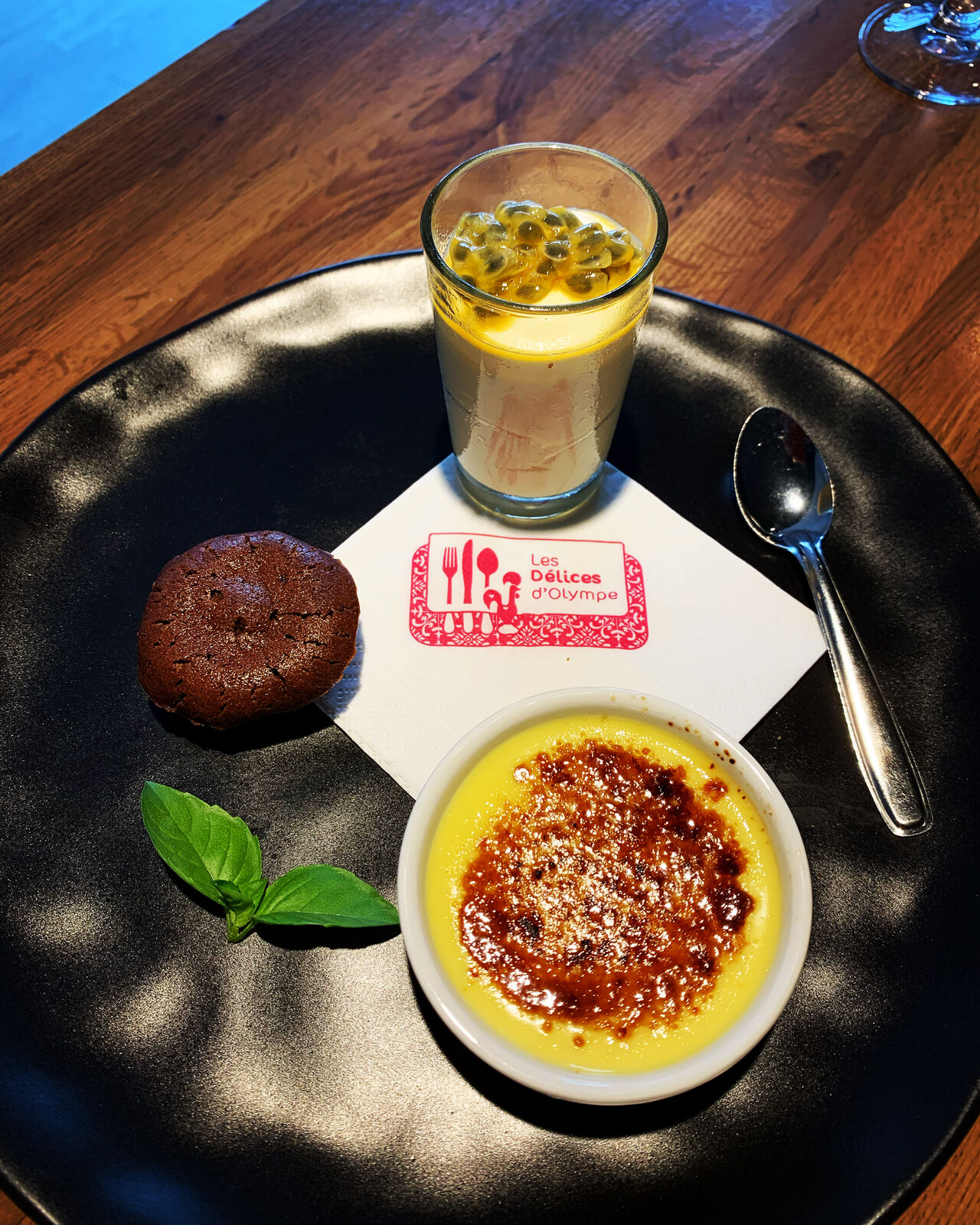 Souhaitez-vous passer une soirée agréable et conviviale autour d’un repas méditerranéen fait maison dans notre restaurant ? Bienvenue dans le « Les Délices D'Olympe ». Nous sommes impatients de vous accueillir avec nos recettes savoureuses et de vous offrir une expérience inoubliable. nn Nous proposons aussi des plats végétariens à nos invités – donc tout le monde trouvera une spécialité à son goût. Vous serez surpris du nombre de possibilités de repas sains dont vous disposez.nn Une terrasse extérieure est à disposition pour les beaux jours. Qu’il s’agisse d’un important déjeuner d’affaires ou d’un simple repas avec des collègues, notre menu propose un choix varié de plats délicieux.